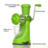 The anti-drip system inside the juicer is made The handy juicer comes with ananti-skid base The handle of the juicer is made of prime up of high quality plastic. It supports in the which creates vacuum while in use and quality and pretty easy to operate. squeezing of fruits and keeps it hygienic. prevents it from moving back and forth during extraction of juice.