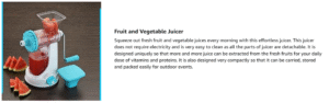 Excellent juicer for the price. No electricity required and still extracts a good amount of juice.